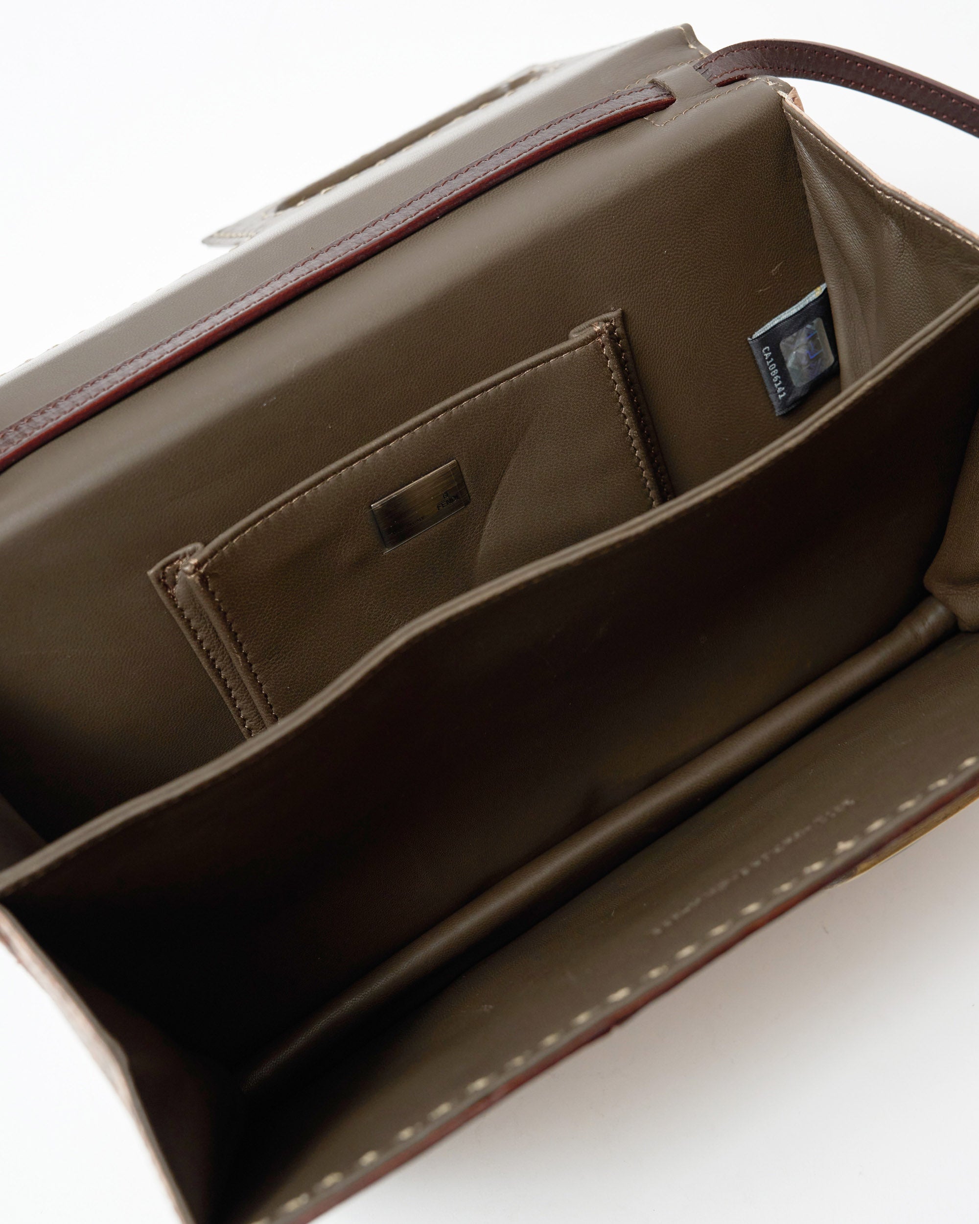 La borsa Fendi Baguette presenta un design in pelle italiana splendidamente realizzato, che la rende un pezzo di lusso per guardaroba eleganti. La sua forma strutturata e il marchio esclusivo aggiungono un tocco di raffinatezza a qualsiasi look, rendendolo il tocco finale perfetto per un completo davvero esclusivo.