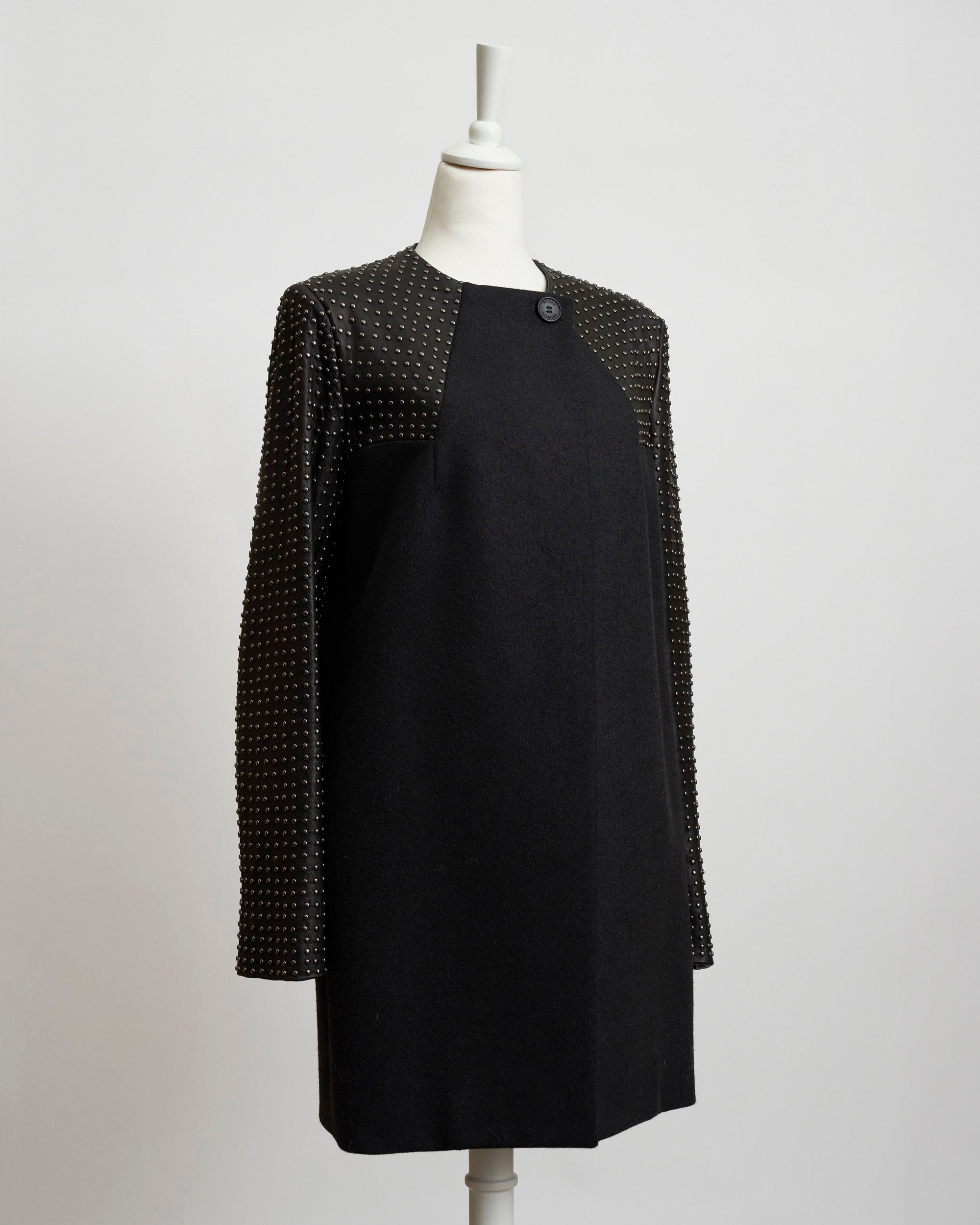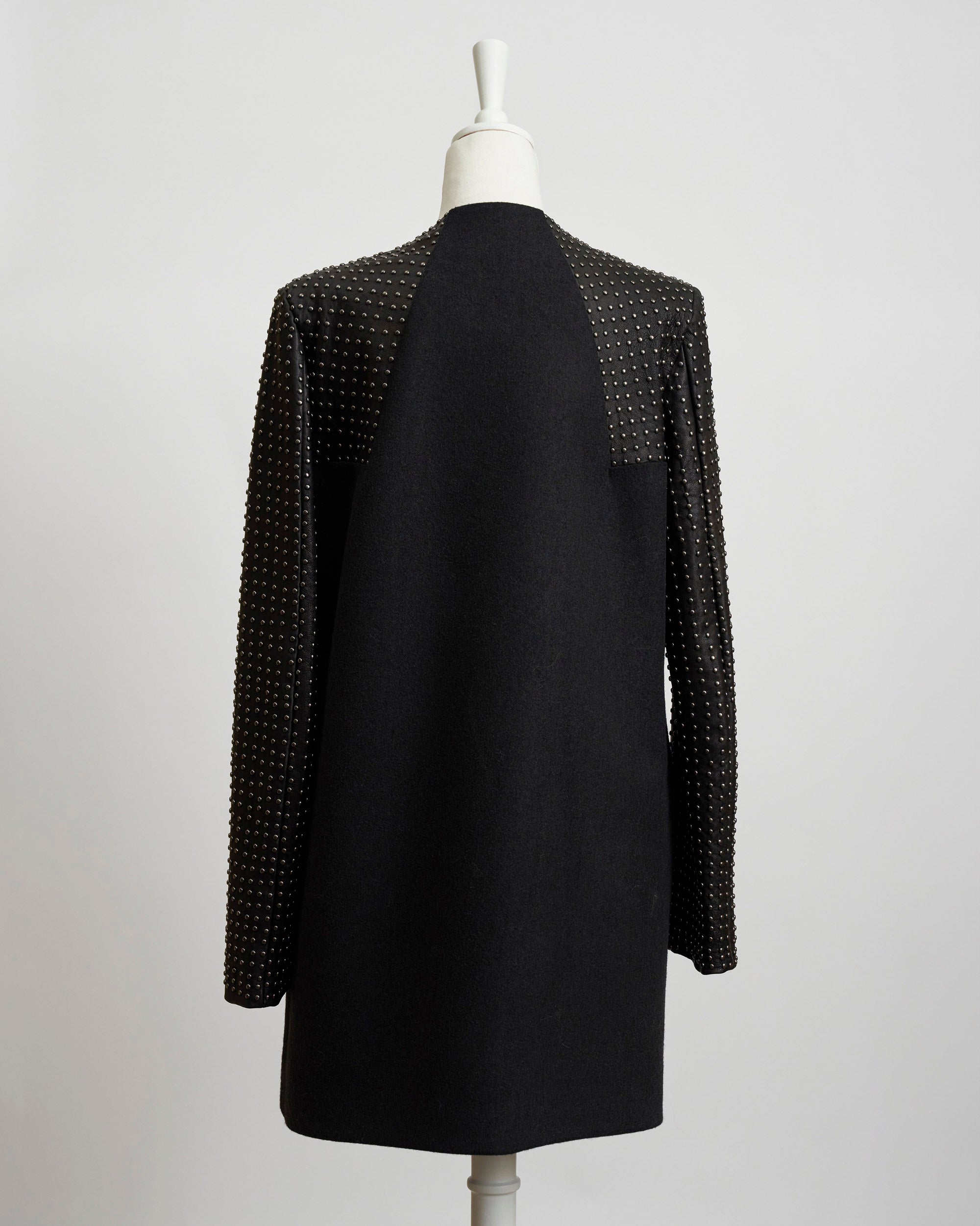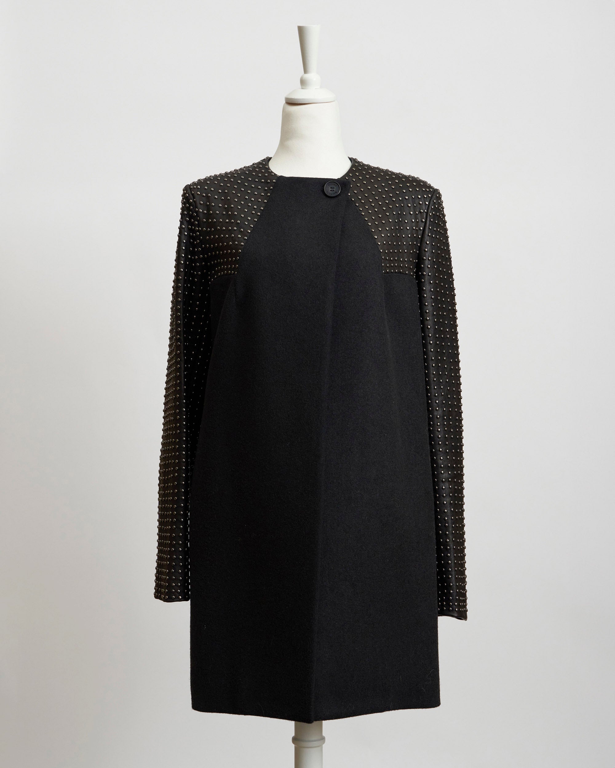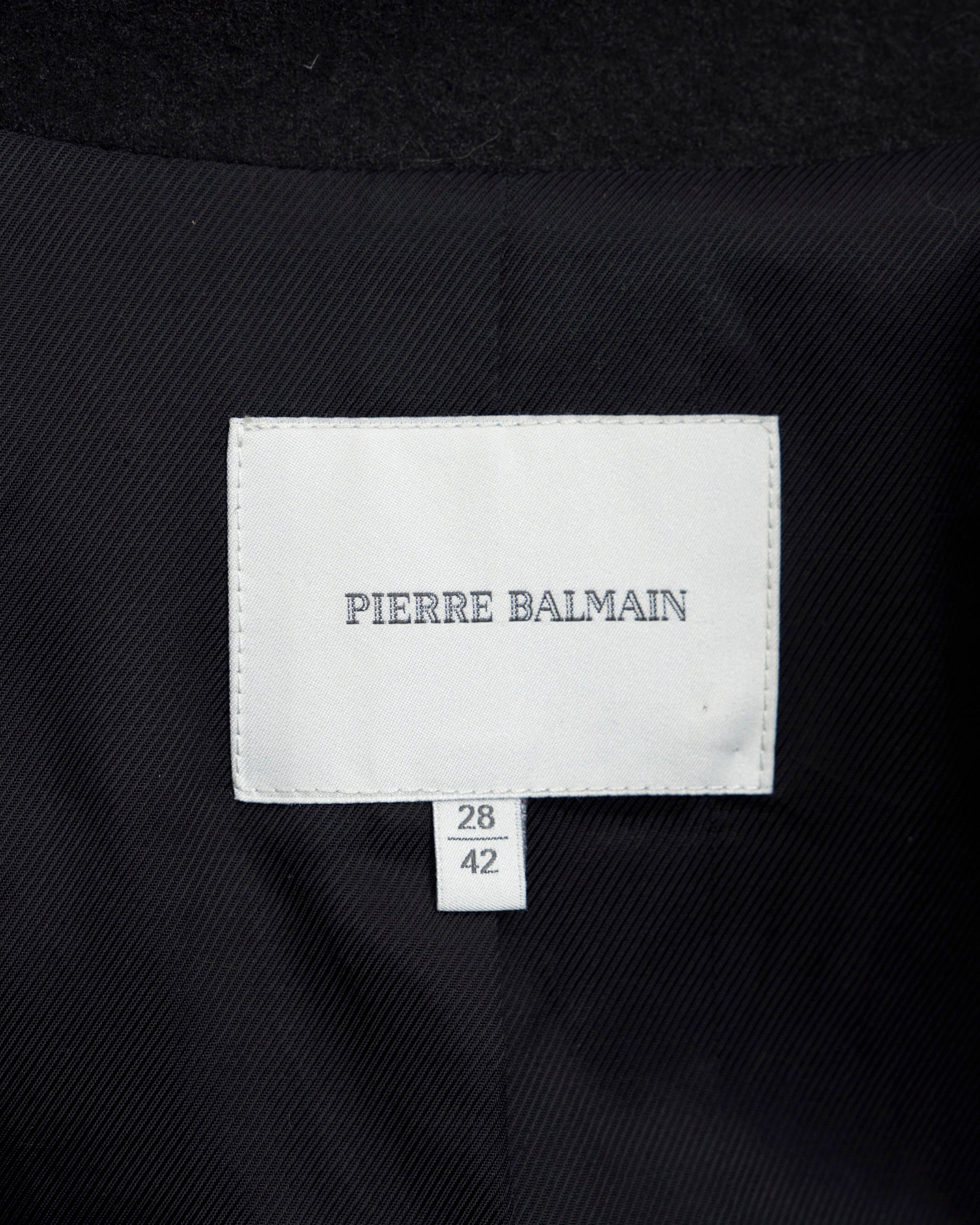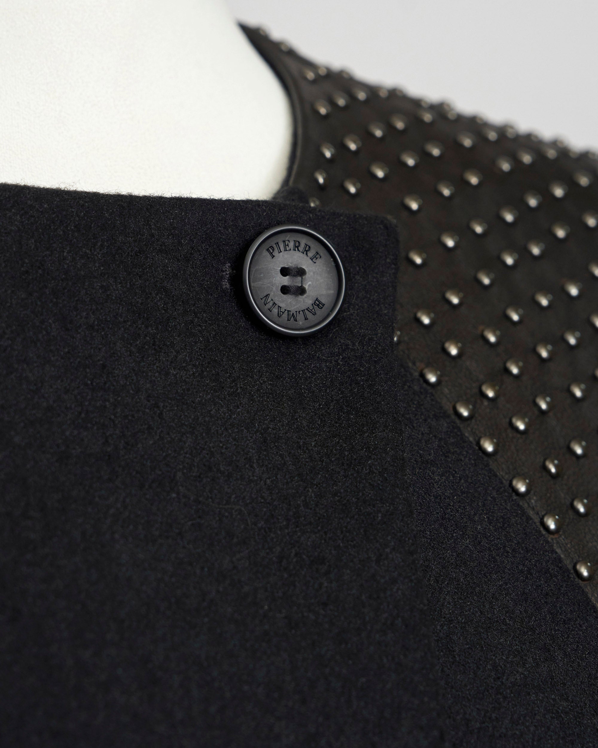 This BALMAIN Short coat is a timeless favorite. Featuring studs and draping, it makes a bold statement without compromising on comfort and coziness. Enjoy fashion-forward luxury with this must-have piece!