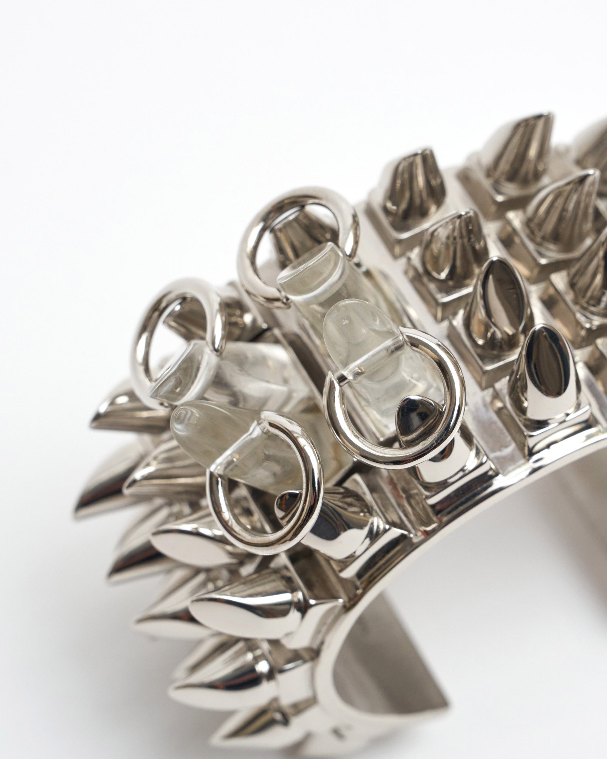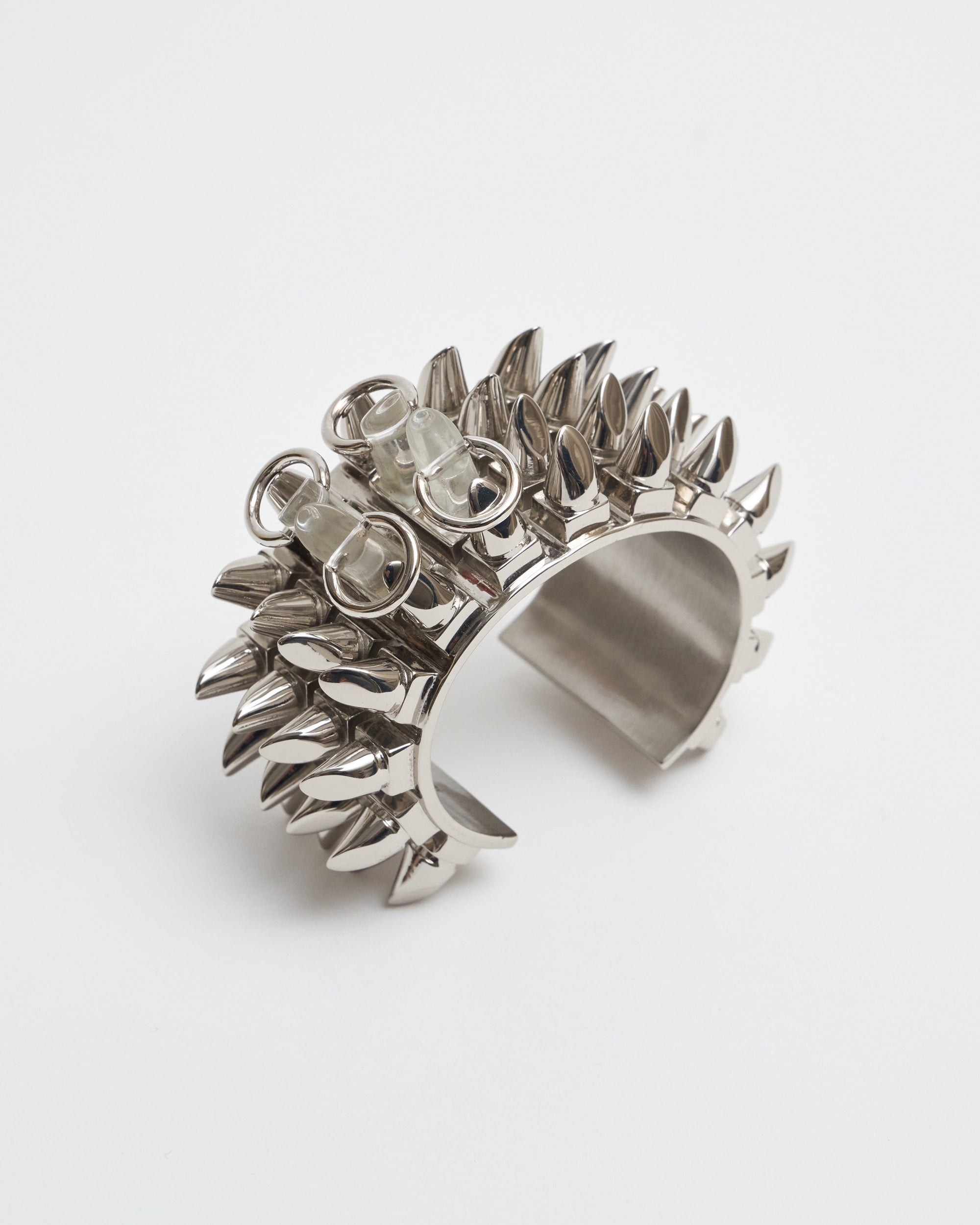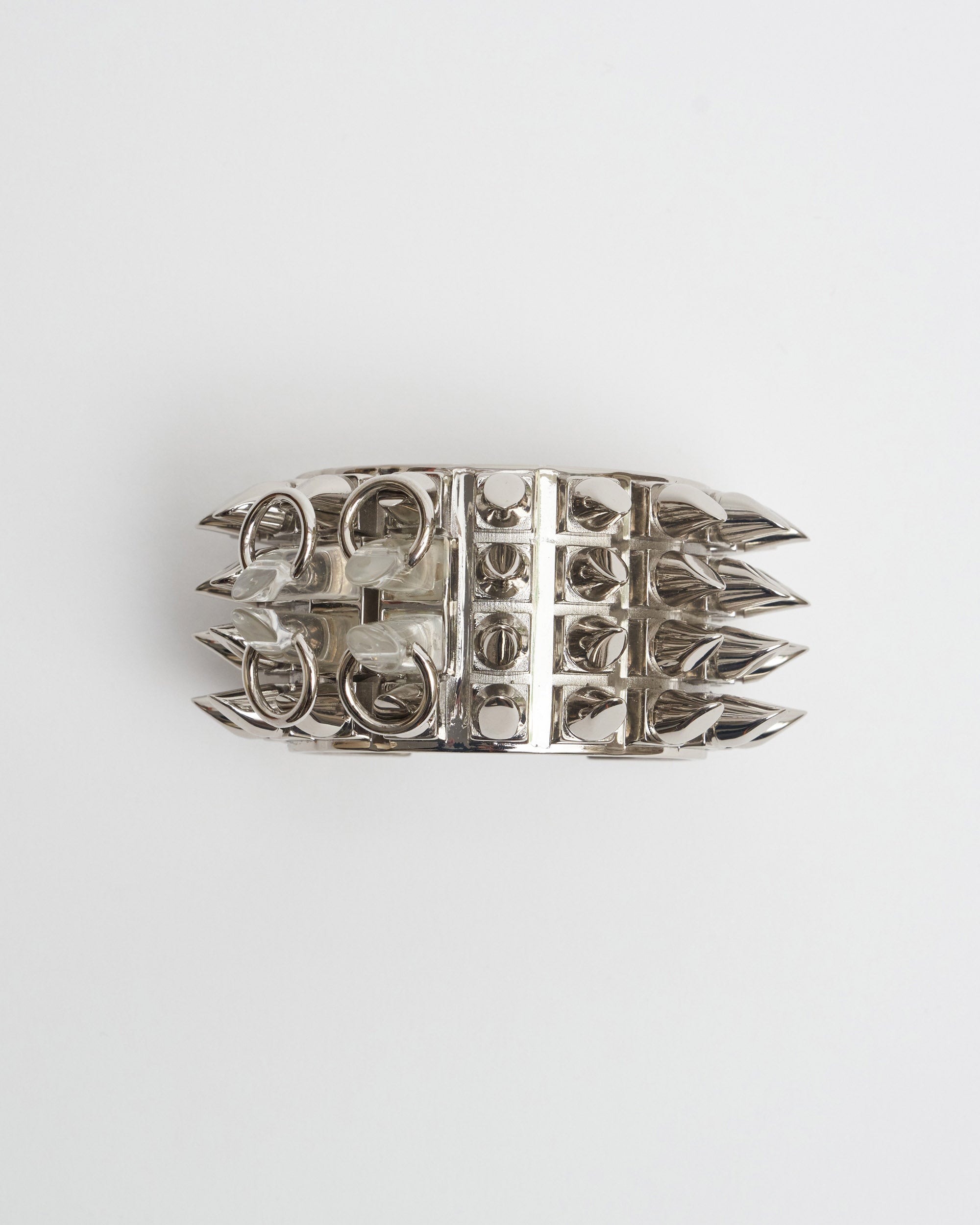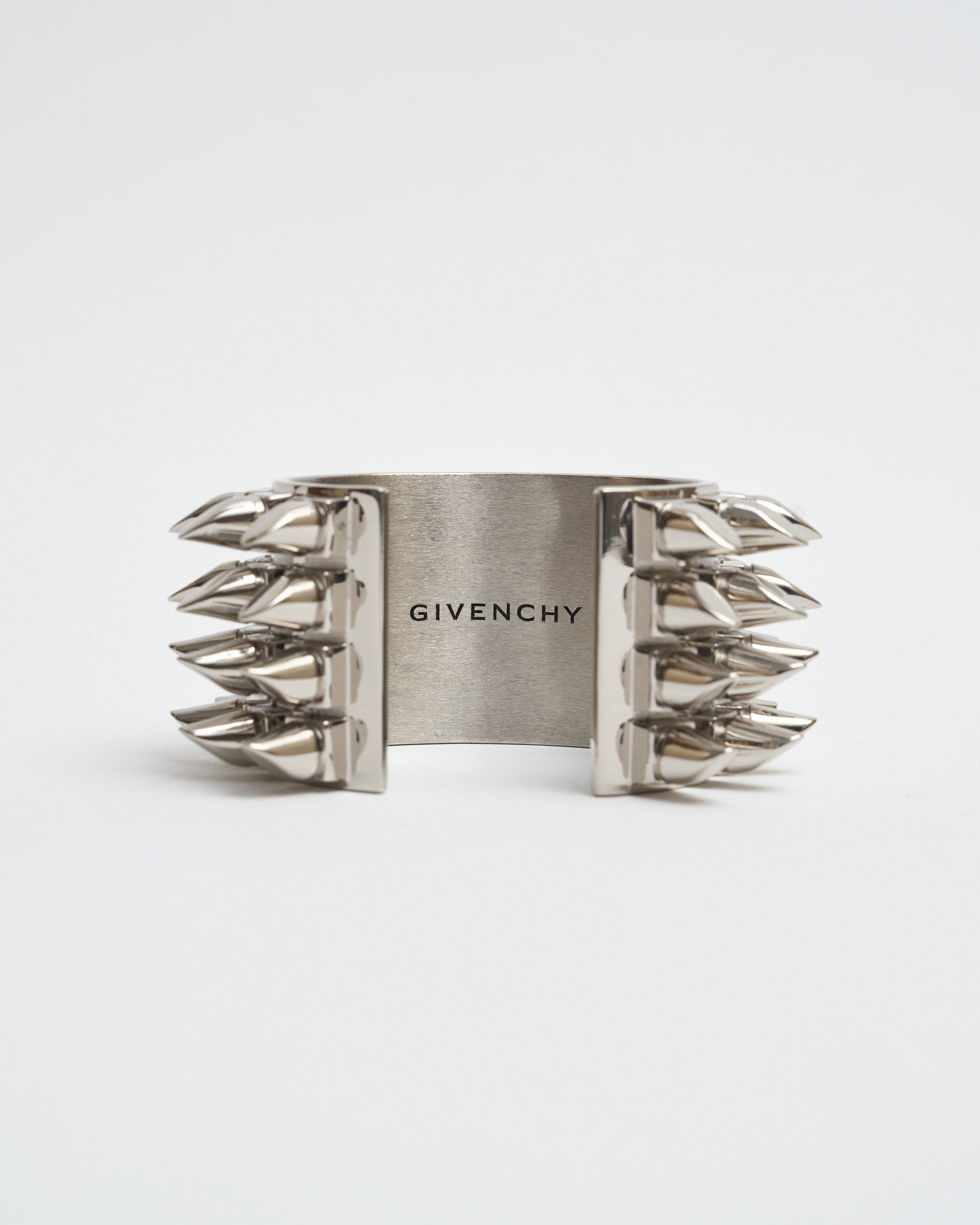 Make a statement with the Givenchy Punk Ring with Spikes Silver. The iconic silhouette is crafted from gleaming polished silver and adorned with sharp spikes, making it a daring choice that will turn heads. An unforgettable piece.